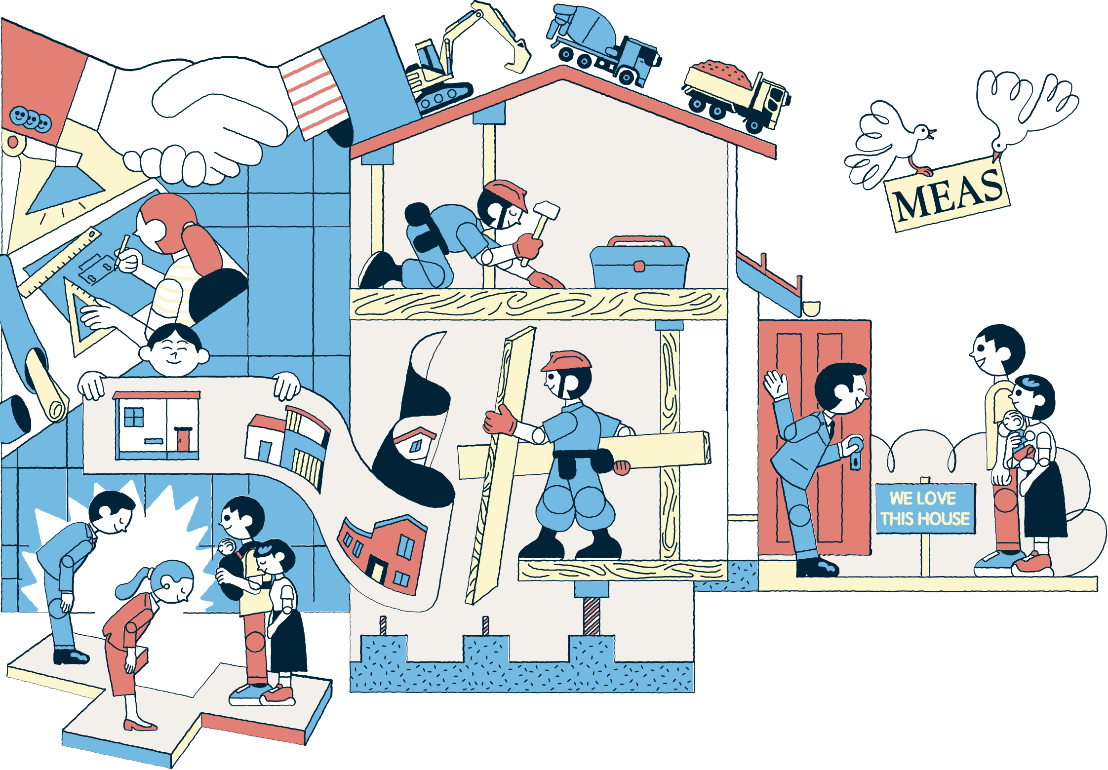 MEASは、建てた人と住む人に永く愛され続ける住まいこそが、本当の良い住まいだと考えています。住まいを大切にしているすべての人のために、正しく確実な住まいの長期保証を実現します。