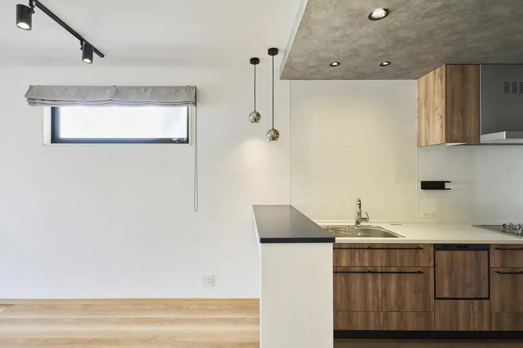 このスタイルは、LDKとの繋がりを感じさせつつも、腰高の「仕切りカウンター」を設けることで、キッチンという空間を緩やかに独立させています。