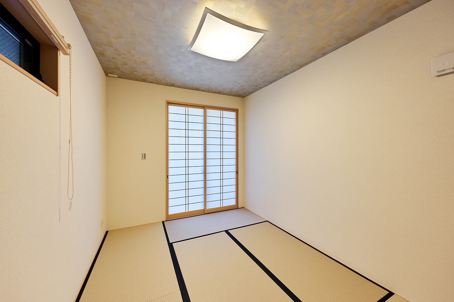 玄関ホールから導かれる独立した和室は、日常を忘れてホッと一息つける離れのような空間。扉を開ければ、目の前には自分たちだけのプライベートなお庭が広がります。LDKを通らずにアクセスできるため、静かに読書を楽しんだり、お庭の緑を眺めながらお茶をしたりと、使い方は自由自在。畳の香りと窓の外に流れる穏やかな時間が、住まいに奥行きのある豊かさをもたらします。