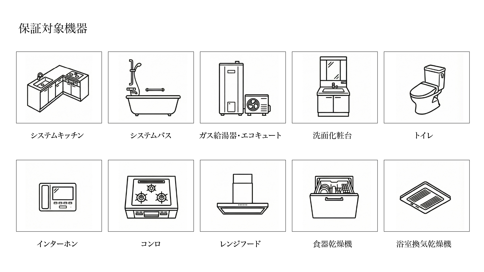 対象:システムキッチン、システムバス、給湯器、洗面化粧台、トイレ、ドアホン、ビルトイン機器